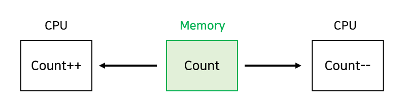 어떤 CPU가 마지막으로 count 값을 store했는지에 따라 최종 결과값이 달라진다. -> race condition