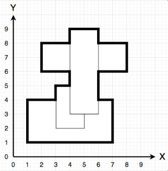 이를 구분해주기 위해서 좌표를 2배로 늘리면 (6, 10), (8, 10), (6, 12), (8, 12)가 된다. (6,10)과 (6, 12) 사이에 (6, 11)이 생기고 이는 테두리가 아니라는 표시가 되어있기 때문에 쉽게 테두리로만 이동하도록 만들 수 있다.