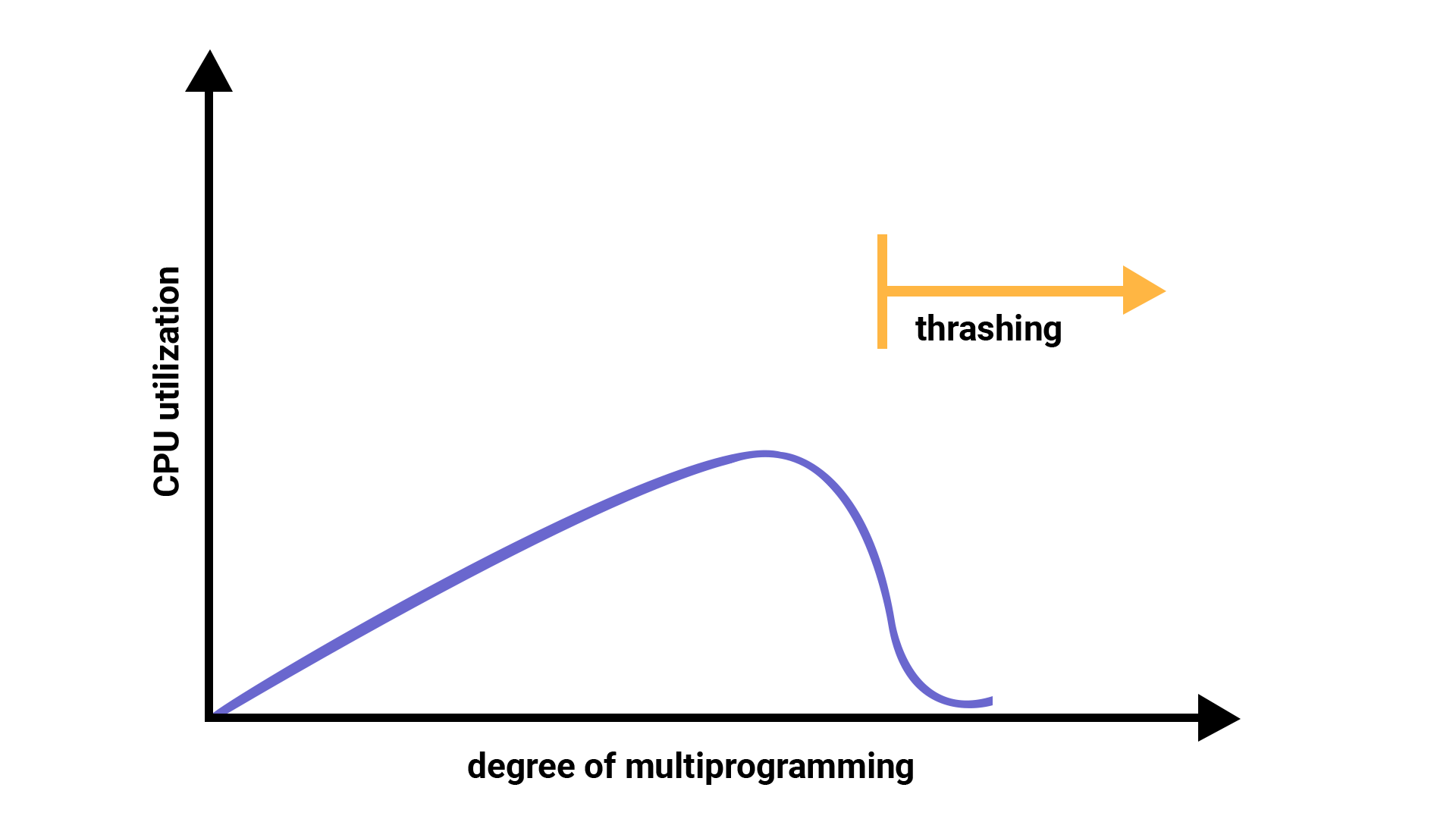 - 프로세스는 page의 swap in/out 으로 매우 바쁨 -> CPU utilization은 더욱 감소 (CPU는 한가함)