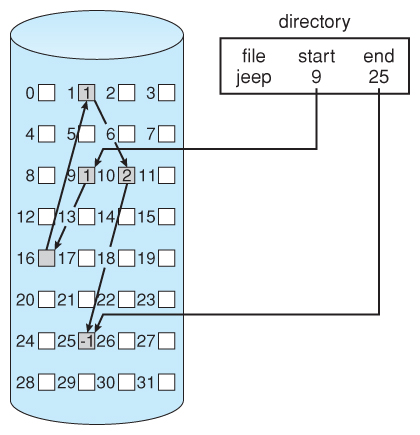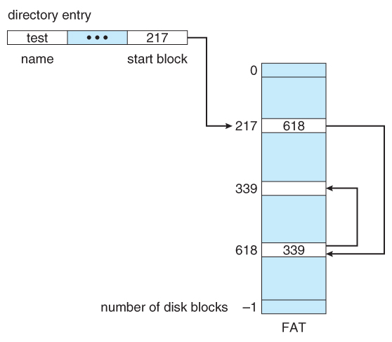 - 변형: File-Allocation table (FAT). MS DOS와 OS/2에서 사용