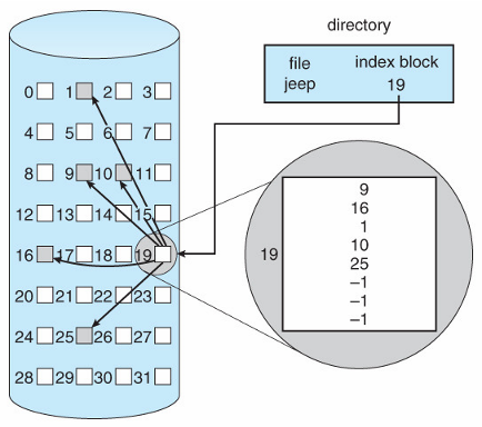 - linked scheme: index block 마지막이 다음 index block을 가리키는 포인터