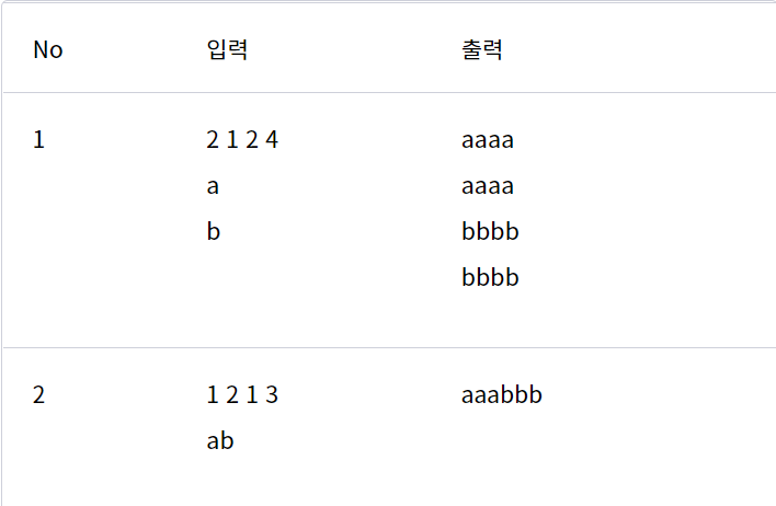 문자열의 행, 열, 행 확대 크기, 열 확대 크기가 주어질 때 확대 된 문자 배열을 출력하라.